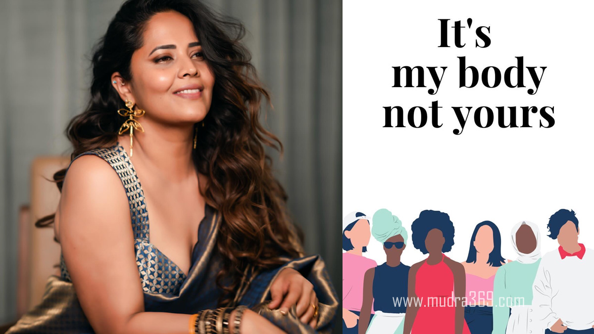 అనసూయ, ట్విట్టర్ వేదికగా చేసిన పోస్ట్.. ఓ ఇమేజ్కి సంబంధించినది. అందులో మహిళలు భిన్న వస్త్రధారణోల కనిపిస్తున్నారు. అదొక ఆర్ట్. దాంట్లోనే, ‘It’s My Body Not Yours’ అని ప్రస్తావించబడింది.